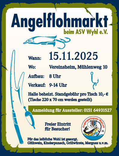 Vom 10.02.2025 bis 05.04.2025 und vom 25.08.2025 bis 18.10.2025 ist das Angeln am Vereinsweiher nicht erlaubt, da ein Forellenbesatz durchgeführt wird.